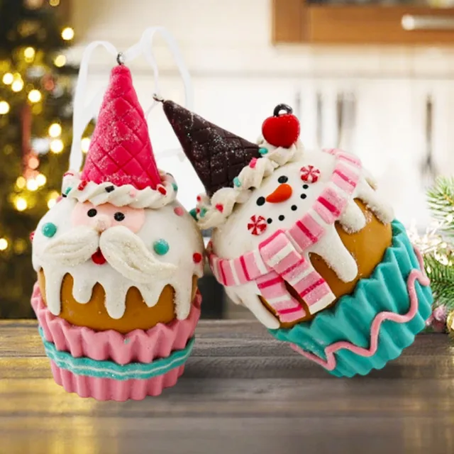 Christmas Ornaments Soft Clay Pastel Pink Blue Green Santa Claus Shape Christmas Ornaments for Christmas Tree Hanging Pendants