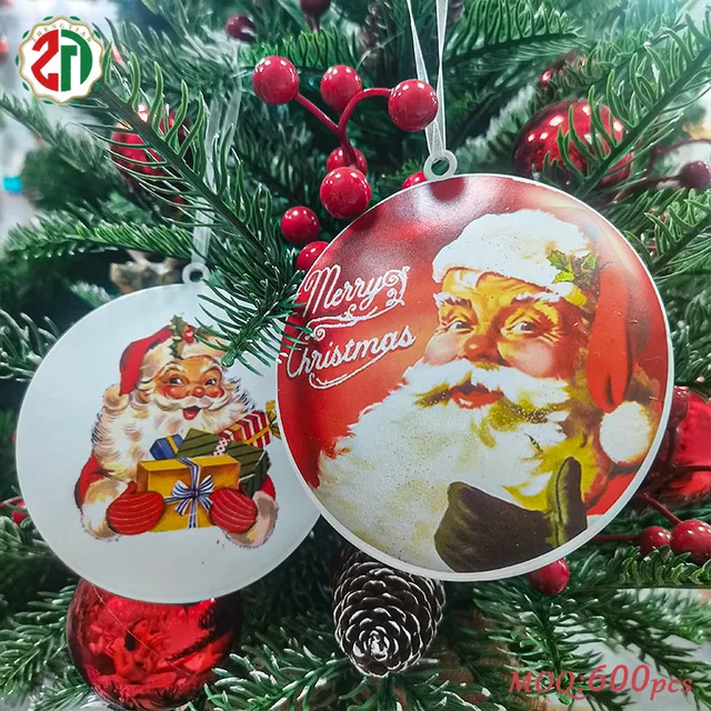 Victorian Santa Round Christmas Ornament Circle Version Two Color Background Christmas Iron Sheet Pendant Christmas Tree Decor